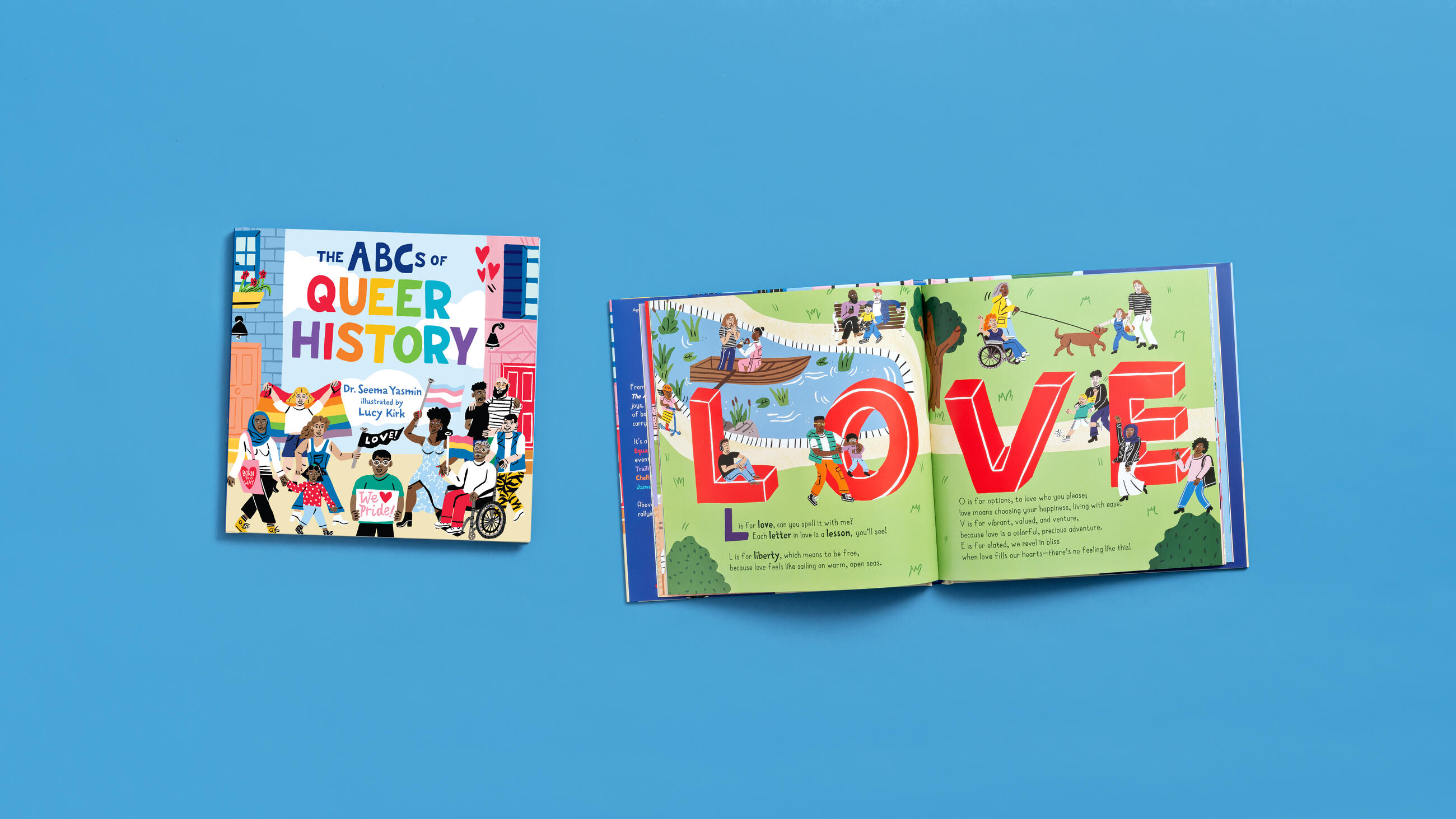 In a beautiful picture book brimming with P for Pride, writer and poet Seema Yasmin and illustrator Lucy Kirk celebrate all the joys and challenges of queer history in the United States through lively, rhyming verse and bright, colorful illustrations.