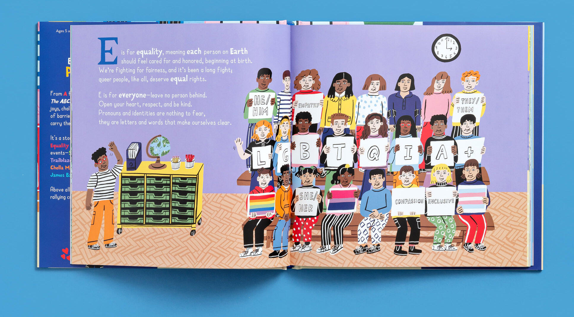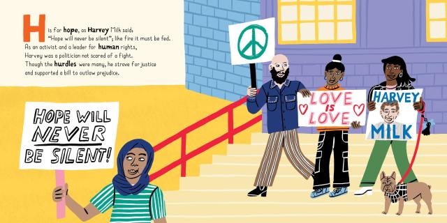 This is a book of people, of ideas, of accomplishments and events. It’s a book about Allies and Ancestors, about Belonging and Being accepted, about Hope, Knowledge, and Love. About historic moments like Stonewall, and how it changed the world. And all about Trailblazers, like Audre Lorde, James Baldwin, Josephine Baker, Harvey Milk, Barbara Jordan, George Takei, Elliot Page, and Sally Ride.
